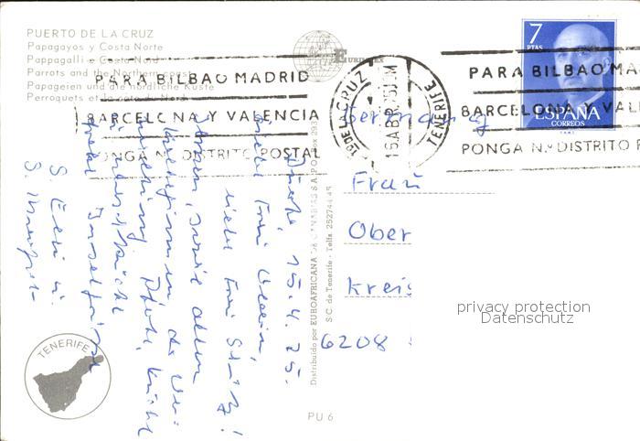 alte Postkarte Papagei Costa Nord Puerto de la Cruz postalisch gelaufen Erhaltung siehe scans