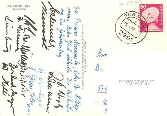73122327 alte Postkarte Papenburg Ems Muenster postalisch gelaufen Erhaltung siehe scans [KathaD81] KatCode: 11110003454041