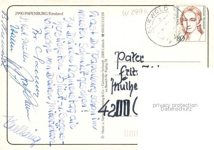 73120219 alte Postkarte Papenburg Ems Windmuehle Schloss Park postalisch gelaufen Erhaltung siehe scans [KathaD81] KatCode: 11110003454041