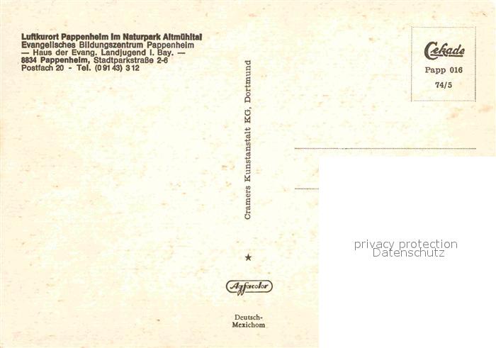 72776559 Pappenheim Mittelfranken Bildungszentrum postalisch nicht gelaufen Erhaltung siehe scans [KathaD81] KatCode: 11110009577158