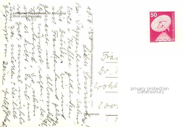 72714465 Pappenheim Mittelfranken Blick vom Weinberg postalisch nicht gelaufen Erhaltung siehe scans [LiesaD40] KatCode: 11110009577158