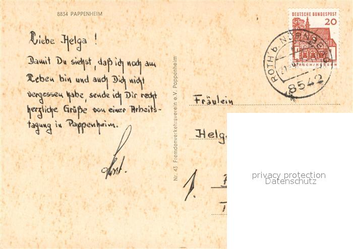 73671966 alte Postkarte Pappenheim Mittelfranken Burg Altes Schloss Augustiner Kloster Panorama postalisch gelaufen Erhaltung siehe scans [WerneD78] KatCode: 11110009577158