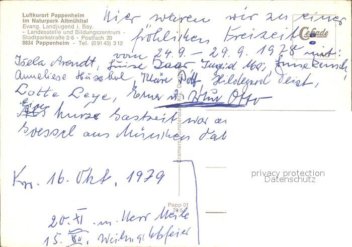72529151 Pappenheim Mittelfranken Ev Landjugend Landesstelle und Bildungszentrum postalisch nicht gelaufen Erhaltung siehe scans KatCode: 11110009577158