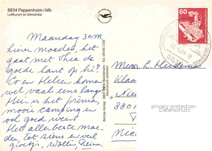 72783440 alte Postkarte Pappenheim Mittelfranken Fliegeraufnahme postalisch gelaufen Erhaltung siehe scans [WerneD78] KatCode: 11110009577158
