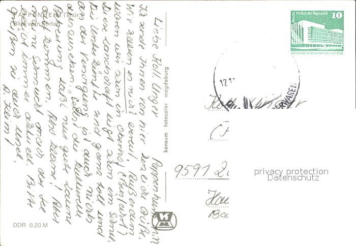 72048816 alte Postkarte Pappenheim Thueringen Blick vom Roeder postalisch gelaufen Erhaltung siehe scans KatCode: 11110016066023