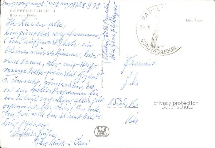 72273381 alte Postkarte Pappenheim Thueringen Blick vom Roeder postalisch gelaufen Erhaltung siehe scans KatCode: 11110016066023