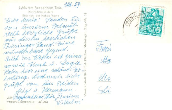 73899919 alte Postkarte Pappenheim Thueringen Blick von der Hohen Warte postalisch gelaufen Erhaltung siehe scans [WerneD78] KatCode: 11110016066023