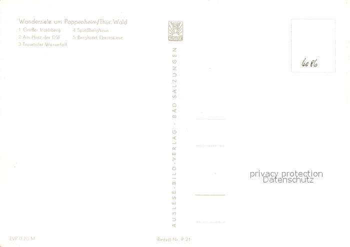 72950642 Pappenheim Thueringen Gr Inselsberg Platz der DSF Trusetaler Wasserfall Spiessberghaus Berghotel Ebertswiese postalisch nicht gelaufen Erhaltung siehe scans [WerneD78] KatCode: 11110016066023