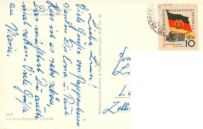 73899918 alte Postkarte Pappenheim Thueringen mit der Hohe Warte postalisch gelaufen Erhaltung siehe scans [WerneD78] KatCode: 11110016066023