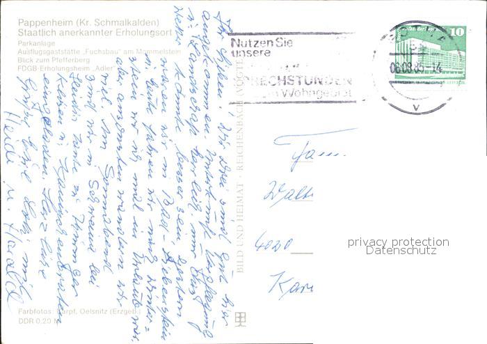 72306628 alte Postkarte Pappenheim Thueringen Parkanlage Ausflugsgaststaette Fuchsbau Pfefferberg FDGB Heim Adler postalisch gelaufen Erhaltung siehe scans KatCode: 11110016066023