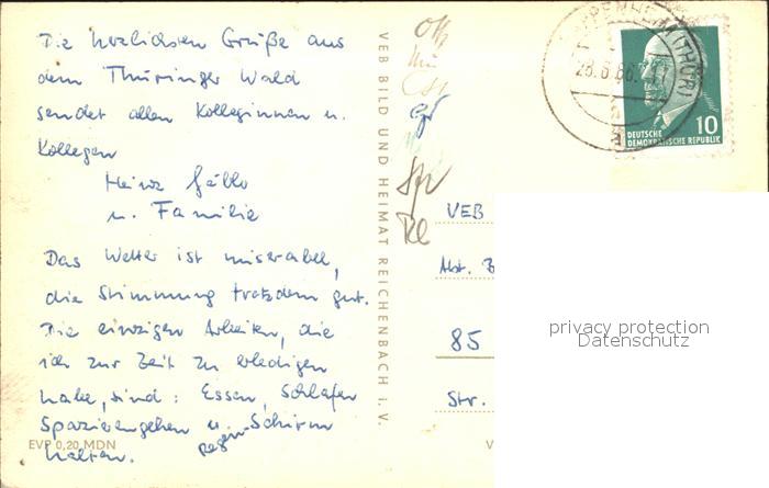 72364999 alte Postkarte Pappenheim Thueringen Wiebach Seimberg Roeder Gr Inselsberg HOG Heuberghaus Trusetaler Wasserfall postalisch gelaufen Erhaltung siehe scans KatCode: 11110016066023