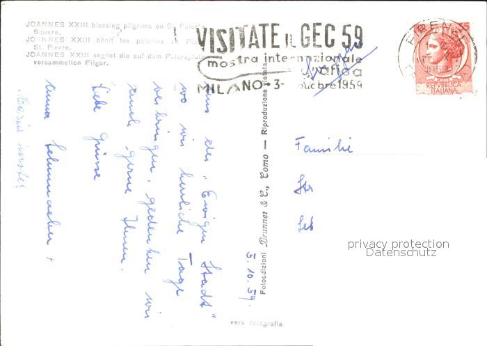 alte Postkarte Papst Giovanni XXIII Segen Piazza S. Pietro postalisch gelaufen Erhaltung siehe scans