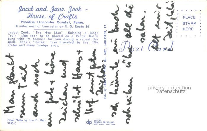 72278193 Paradise Pennsylvania Jacok and Jane Zook House of Crafts postalisch nicht gelaufen Erhaltung siehe scans KatCode: 14140410000000