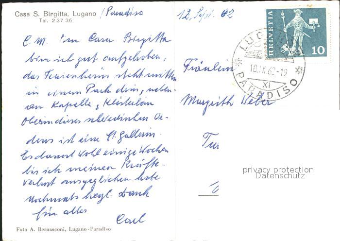 11637010 alte Postkarte Paradiso TI Casa S Birgitta postalisch gelaufen Erhaltung siehe scans KatCode: 11470210660200