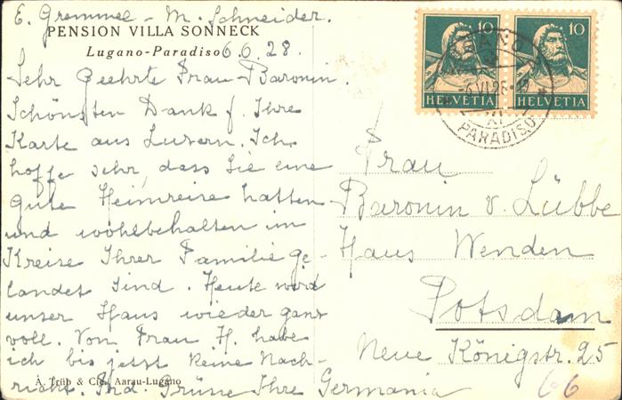 11383989 alte Postkarte Paradiso TI Pension Villa Sonneck postalisch gelaufen gute Erhaltung KatCode: 11470210660200