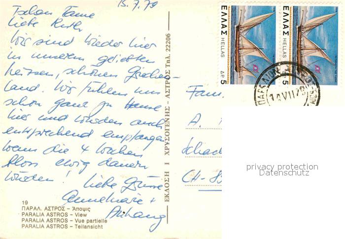 old postcard Paralia Astros Teilansicht postalisch gelaufen Erhaltung siehe scans [WerneD78]