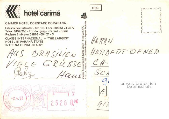 72650503 Paraná Fliegeraufnahme Hotel Carima KatCode 17020