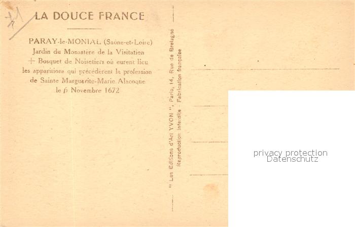 13534973 Paray-le-Monial Jardin du Monastere de la Visitation et Bosque de Noisetiers postalisch nicht gelaufen Erhaltung siehe scans [WerneD78] KatCode: 11170071371342