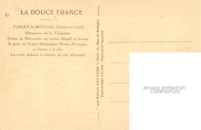 13534980 Paray-le-Monial Monastere de la Visitation postalisch nicht gelaufen Erhaltung siehe scans [WerneD78] KatCode: 11170071371342