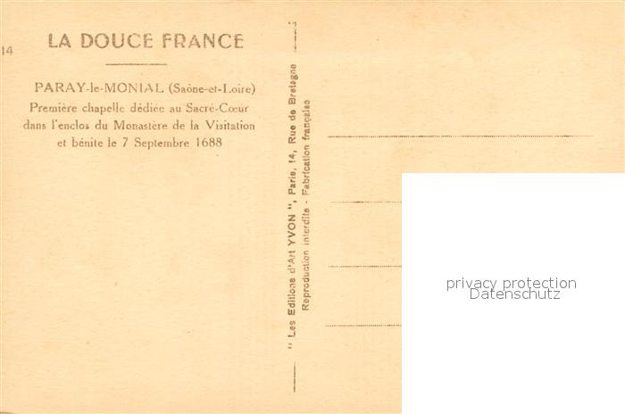 13621947 Paray-le-Monial Première chapelle dédiée au Sacre Coeur Monastère de la Visitation postalisch nicht gelaufen Erhaltung siehe scans [FriedD77] Frie Katcode 11170071371342