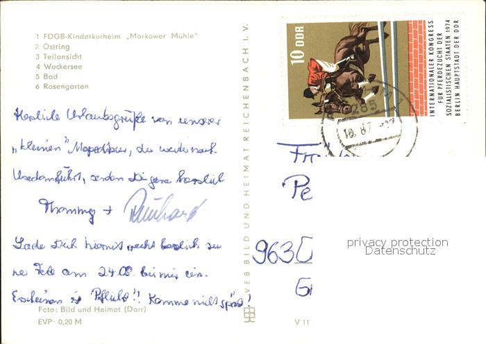 72477066 alte Postkarte Parchim Kinderkurheim Markower Muehle Ostring Teilansicht Wackersee Bad Rosengarten postalisch gelaufen Erhaltung siehe scans KatCode: 11110013060056