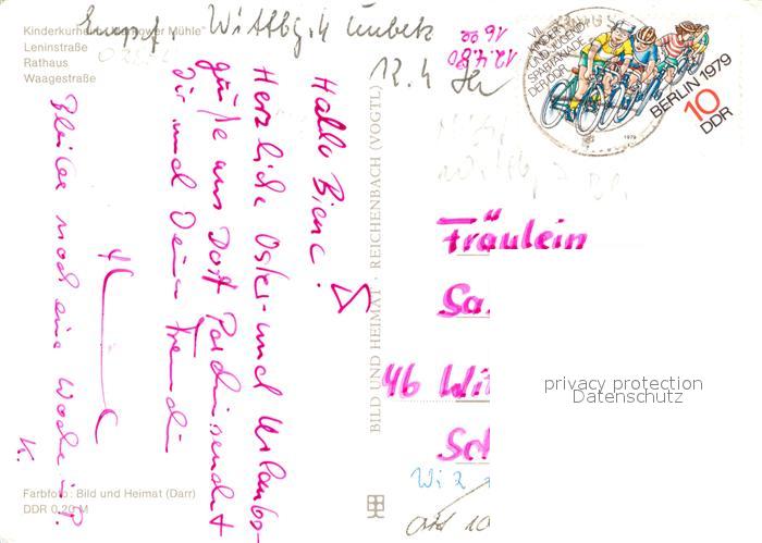 72961014 alte Postkarte Parchim Kinderkurheim Merkower Muehle Leninstrasse Rathaus Waagestrasse postalisch gelaufen Erhaltung siehe scans [FriedD77] KatCode: 11110013060056