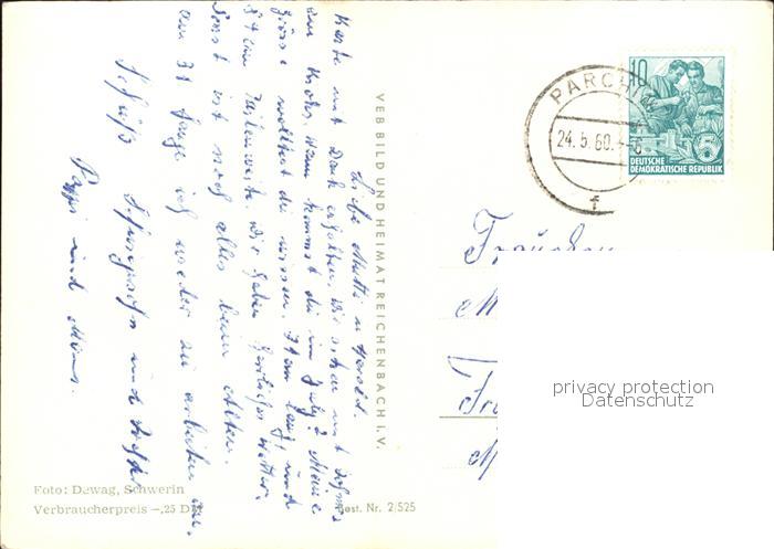 72385531 alte Postkarte Parchim Mecklenburg-Vorpommern Bahnhof Wocker See Strasse des Friedens Badeanstalt Sankt Georgenkirche postalisch gelaufen Erhaltung siehe scans KatCode: 11110013060056