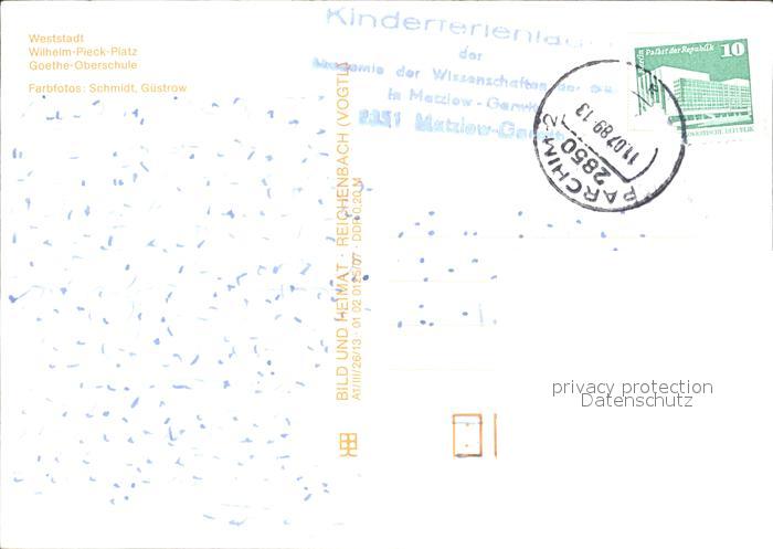 72334088 alte Postkarte Parchim Mecklenburg-Vorpommern Weststadt Wilhelm Pieck Platz Goethe Oberschule Wappen postalisch gelaufen Erhaltung siehe scans KatCode: 11110013060056
