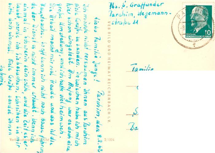 73897676 alte Postkarte Parchim Strasse des Friedens Am Wacker See Kindergenesungsheim Markower Muehle Philipp Mueller Strasse postalisch gelaufen Erhaltung siehe scans [FriedD77] KatCode: 11110013060056