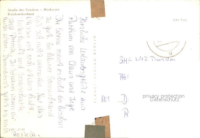 72476564 alte Postkarte Parchim Strasse des Friedens Wackersee Kreiskrankenhaus postalisch gelaufen Erhaltung siehe scans KatCode: 11110013060056