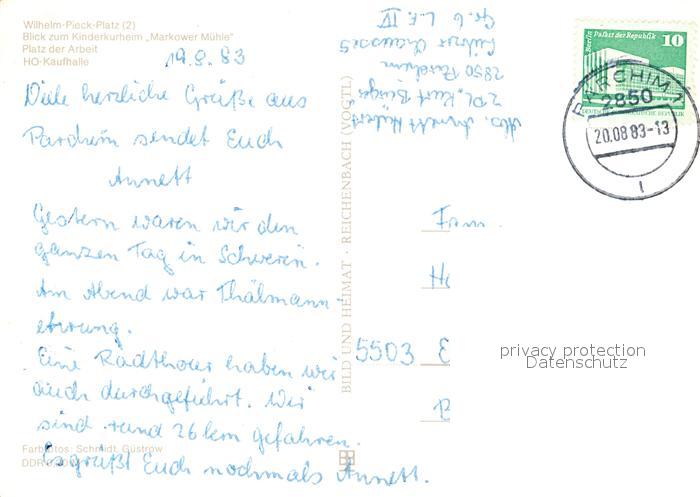73071504 alte Postkarte Parchim Wilhelm-Pieck-Platz Platz der Arbeit postalisch gelaufen Erhaltung siehe scans [NatalD47] KatCode: 11110013060056