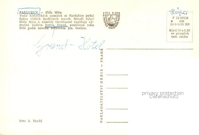 13279213 Pardubice Pardubitz Tlida Miru Hotelu Grand postalisch nicht gelaufen Erhaltung siehe scans [WerneD78] KatCode: 11520