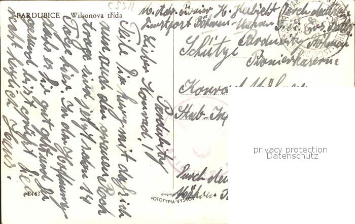 31739960 old postcard Pardubice Pardubitz Wilsonova trida NZ3 postalisch gelaufen Feldpost Erhaltung siehe scans KatCode: 11520