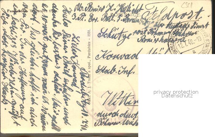 31740048 old postcard Pardubice Pardubitz Wilsonova trida NZ3 postalisch gelaufen Feldpost Erhaltung siehe scans KatCode: 11520