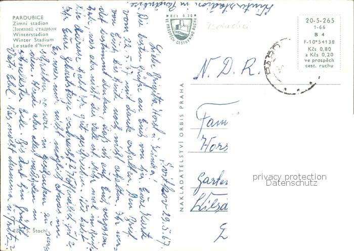old postcard Pardubice Pardubitz Winterstadion postalisch gelaufen