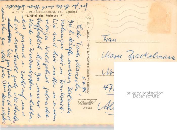 13318463 carte postale Parentis-en-Born Hotel des Pecheurs postalisch gelaufen Erhaltung siehe scans [WerneD78] KatCode: 11170040240217