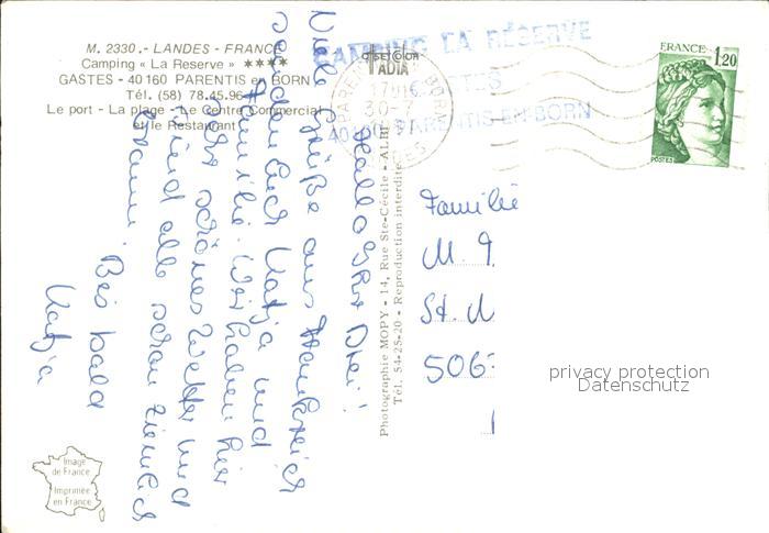 12035387 carte postale Parentis-en-Born Landes Camping La Reserve postalisch gelaufen Erhaltung siehe scans KatCode: 11170040240217