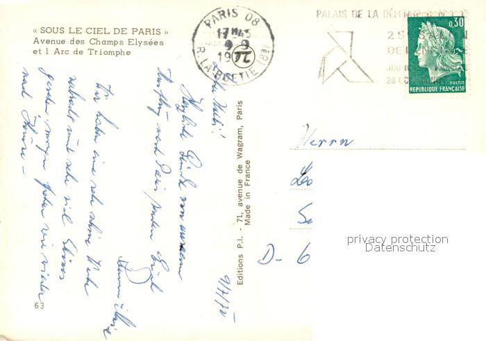 13718672 Paris 75 Avenue des Champs Elysées Arc de Triomphe postalisch gelaufen Erhaltung siehe scans [FriedD77] carte postale Frie Katcode 11170075175056