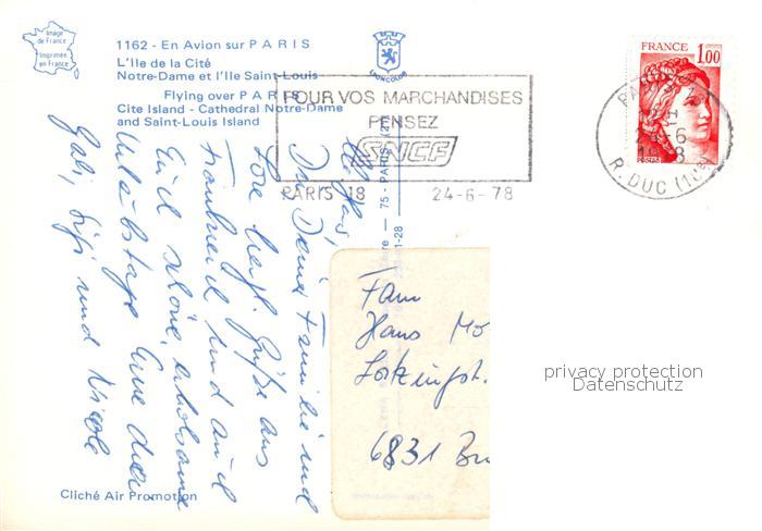 13790434 Paris 75 Ile de la Cité Notre Dame Ile Saint Louis vue aérienne postalisch gelaufen Fliegeraufnahme Erhaltung siehe scans [FriedD77] Fliegeraufnahme carte postale Frie Katcode 11170075175056