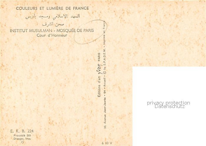 13790782 Paris 75 Institut Musulman Mosquée Cour d Honneur postalisch nicht gelaufen Erhaltung siehe scans [FriedD77] Frie Katcode 11170075175056