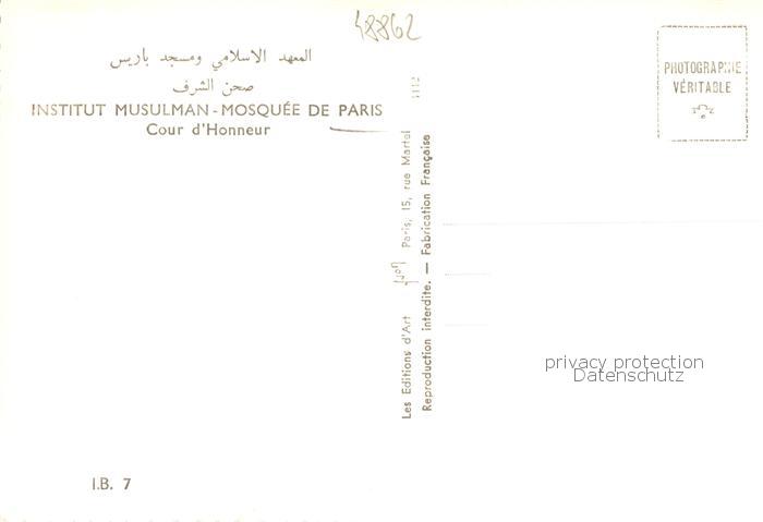 13842629 Paris 75 Institut Musulman Mosquee de Paris Cour d Honneur postalisch nicht gelaufen Erhaltung siehe scans [WerneD78] Wern Katcode 11170075175056