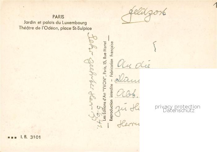 13829324 Paris 75 Jardin et palais du Luxembourg Theatre de l’Odeon place St Sulpice Feldpost postalisch gelaufen Erhaltung siehe scans [WerneD78] carte postale Wern Katcode 11170075175056