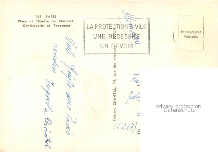 13721946 Paris 75 Place et Theatre du Chatelet Conciergerie postalisch gelaufen Erhaltung siehe scans [LiesaD40] carte postale Lies Katcode 11170075175056