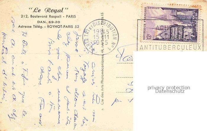 14104408 carte postale PARIS 75 Royal Hotel postalisch gelaufen Erhaltung siehe scans [FriedD77] KatCode: 11170075175056