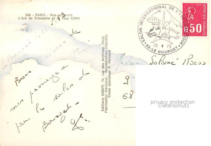 13796668 Paris 75 Vue aerienne Arc de Triomphe et la Tour Eiffel postalisch gelaufen Erhaltung siehe scans [WerneD78] carte postale Wern Katcode 11170075175056