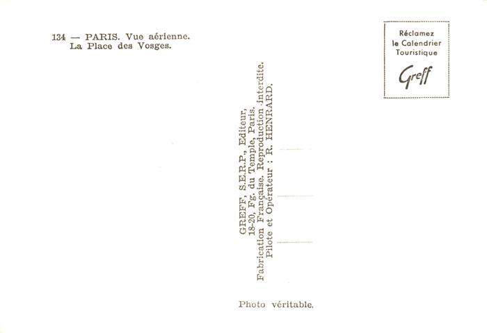 13892185 Paris 75 Vue aerienne La Place des Vosges postalisch nicht gelaufen Erhaltung siehe scans [FriedD77] Frie Katcode 11170075175056