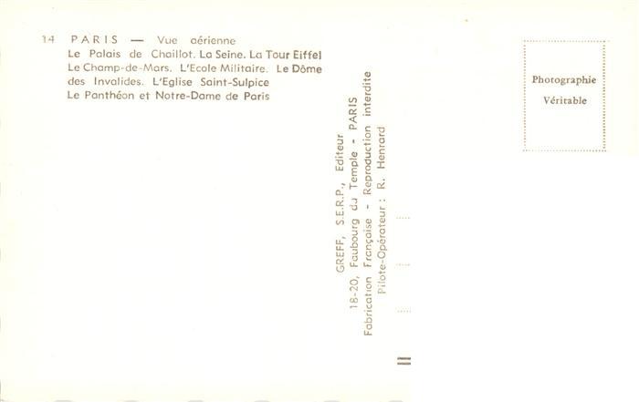 13880294 Paris 75 Vue aerienne Le Palais de Chaillot La Seine La Tour Eiffel postalisch nicht gelaufen Erhaltung siehe scans [WerneD78] Wern Katcode 11170075175056