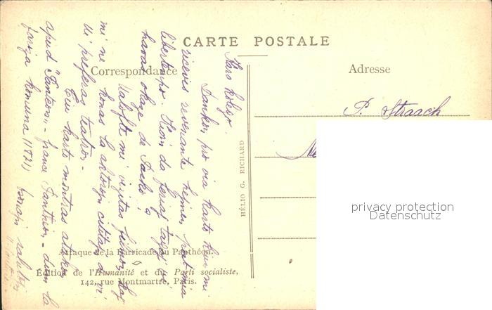 12155355 Paris Attaque de la Barricade du Pantheon postalisch nicht gelaufen Erhaltung siehe scans KatCode: 11170075175056
