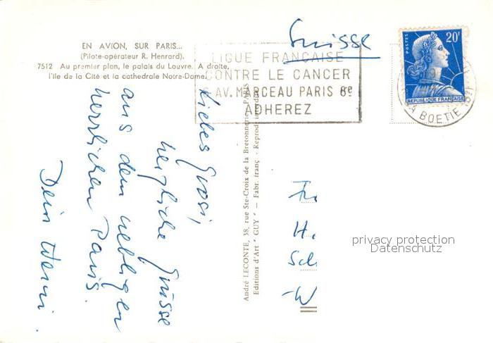 13338127 carte postale Paris Au premier plan Le Palais du Louvre Ile de la Cite Cathedrale Notre Dame Vue aerienne postalisch gelaufen Erhaltung siehe scans [WerneD78] KatCode: 11170075175056
