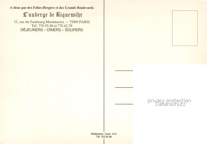 13653449 Paris Auberge de Riquewihr Dejeuners Diners Soupers KatCode 11170075175056